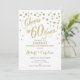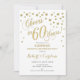 Design elegante em branco e dourado brilhante falso com confetes e fonte manuscrita. Saúde por 60 Anos! Perfeito para uma festa sofisticada. Mensagem para mim se precisar de um ano personalizado.