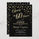 Design elegante em preto e dourado falso com confetes e fonte script. Saúde por 60 Anos! Perfeito para uma festa estilosa. Mensagem para mim se você precisar de um ano personalizado.