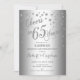 Design elegante em prata brilhante falsa com confete e fonte script cinza. Saúde por 65 Anos! Perfeito para uma festa sofisticada. Mensagem para mim se precisar de um ano personalizado.