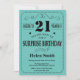 Convite de Aniversário de 21 anos Surpresa Preto e Turquesa. Fundo Preto e Turquesa Aqua Turquesa. Aniversário de Adulto. Aniversário de Homem ou Mulher. Convite de Aniversário para Crianças Menino ou Menina Adolescente. 13º 15º 16º 18º 20º 21º 30º 40º 50º 60º 70º 80º 90º 100º. Qualquer Idade. Para personalização adicional, clique no botão "Personalize" e use nossa ferramenta de design para modificar este modelo.
