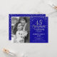 Convite de Surpresa de 45º Aniversário de Casamento com Foto. Design elegante em azul safira com fonte de escrita prateada falsa e confetes. Mensagem para mim se precisar de ano personalizado.
