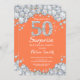 Surpresa 50º Convite de Aniversário. Fundo Vermelho Diamante Coral e Silver Rhinestone. Convite para o Elegante Birthday Bash. Aniversário Adulto. Aniversário das mulheres. Homens Aniversário. Para mais personalização, clique no botão "Personalizar" e use a ferramenta design para modificar este modelo.
