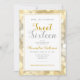 Este doce e surpreendente convite de festas de dezesseis tem uma fronteira de ouro e prata Bokeh. O design é acentuado com textos de estilo manuscrito em ouro e prata.