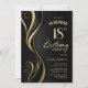 Este convite de aniversário de 18 anos para a surpresa do preto e do ouro moderno dá o tom perfeito para uma festa surpresa. Personalize facilmente seu convite com o nome do convidado de honra, os detalhes da festa e as informações do local em apenas alguns cliques. Você será capaz de criar uma noite cheia de amor, risos e memórias queridas que seus entes queridos irão tesourar para sempre. Você pode escolher entre uma variedade de tipos de papel e estilos de canto para criar um convite exclusivo que se adeque ao seu gosto. Além disso, você também tem a opção de baixar o convite se preferir uma versão digital.