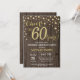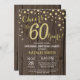 Surpreenda o 60º Convite de Aniversário com Madeira Rústica e Dourado Fundo Diamante Glitter. Retro De Vintagem Do País. Dourado Confetti. Aniversário Adulto. Homens ou Mulheres Aniversário.