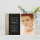 Na moda, elegante ouro brilhante e preto Surpresa 50.º convite de aniversário para mulheres com fotografia personalizada e caligrafia moderna.