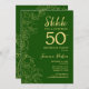 Surpresa Dourada Verde 50º Convite de Aniversário. A design feminina moderna minimalista apresenta sotaques botânicos e letra de script de tipografia. Simples cartão de convite floral perfeito para uma festa surpresa na moda.