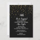 Convite Surpresa em Silêncio Confetes Dourados em Preto na
