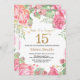 Convite de Aniversário para 15 de Surpresa Floral para Mulheres. Flor Botânica De Aquarela Dourada Glitter. Flores Florais De Pêonias Rosa. Crianças, Lady Birthday. Para mais personalização, clique no botão "Personalizar" e use nossa ferramenta de design para modificar este modelo.