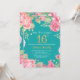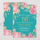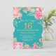 Surpresa Floral 16º Convite de Aniversário para Mulheres. Flor Botânica De Aquarela Dourada Glitter. Flores Florais De Pêonias Rosa. Crianças, Lady Birthday. Teal Aqua Turquoise. Para mais personalização, clique no botão "Personalizar" e use nossa ferramenta de design para modificar este modelo.
