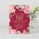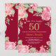 Surpresa Floral 50º Convite de Aniversário para Mulheres. Flor Botânica De Aquarela Dourada Glitter. Flores Florais De Pêonias Rosa. Aniversário Adulto. Fundo Vermelho Burgundy. Para mais personalização, clique no botão "Personalizar" e use nossa ferramenta de design para modificar este modelo.