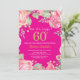60º Aniversário do 60º Convite para Mulheres. Flor Botânica De Aquarela. Dourada Glitter. Flores Florais De Peões Rosa. Aniversário Adulto. Fundo Rosa Quente.