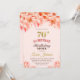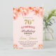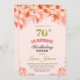Convite de festa surpresa de 70º aniversário com flores cor-de-rosa e dourado.