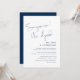 Este é o convite para a festa de casamento íntimo, com design minimalista e elegante em azul marinho (Surpresa, nós fugimos)