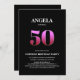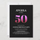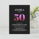 Convide seus amigos e entes queridos para uma surpresa celebração de 50 anos com este na moda minimalista convite de aniversário preto e rosa.