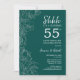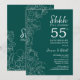 Convite de Celebração de Bodas de 55 Anos Verde Esmeralda Floral Surpresa. Design moderno minimalista azul real apresenta acentos botânicos e fonte de tipografia script. Cartão de convite floral simples perfeito para uma festa de aniversário surpresa elegante. Pode ser personalizado para qualquer ano de casamento. Convites Zazzle impressos ou modelo digital para impressão instantânea.