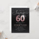 Modern Shhh, é uma surpresa que o 60º convite de aniversário apresenta o roteiro de na moda e o falho número 60 de ouro de rosa e os detalhes de sua festa sobre a cor de fundo brilhante preta, simples e elegante, convite para adultos de grande surpresa de excelente para homens e mulheres.
