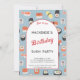 Diversão e moderno convite de aniversário de sushi japonês. A parte traseira apresenta um padrão sushi correspondente para uma ajuda extra de delícia. Personalize o texto para se adequar à sua celebração. Arte original de Nic Squirrell