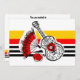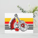 Design de Whimsical desenhado em estilo retrô, com lembranças de um feriado espanhol; uma guitarra de ferro em formas brutas, um fã de legado e uma rosa vermelha em fundo listrado. Um design personalizável em preto, branco, vermelho e ouro amarelo para você personalizar com seu próprio texto, imagens e ideias. Uma imagem de arte digital original.