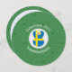 For your Christmas party, this round invitation features an angel wearing the Swedish flag. She flies inside a white, fractal circle of squiggly squares, surrounded by a background fractal of green squiggly squares. Add a name and year to the front to personalize. Or, change the text to whatever you like. Party information is on the back for the details of your event.