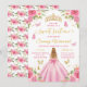 Celebrate her milestone in style with this elegant Sweet 16 invitation featuring a blonde girl in a sparkling pink ball gown, viewed gracefully from the back. Surrounded by soft florals, fluttering butterflies, and a regal golden crown, the design blends youthful charm with royal sophistication. The color palette includes blush pink, shimmering gold, and soft leafy greens—perfect for spring or summer celebrations. Ideal for princess-themed parties, this invitation sets a magical tone for an unforgettable evening.