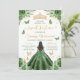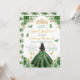 Celebrate her milestone in style with this elegant Sweet 16 invitation featuring an African American girl in a sparkling green ball gown, viewed gracefully from the back. Surrounded by soft florals, fluttering butterflies, and a regal golden crown, the design blends youthful charm with royal sophistication. The color palette includes emerald green, shimmering gold, and soft leafy greens—perfect for spring or summer celebrations. Ideal for princess-themed parties, this invitation sets a magical tone for an unforgettable evening.