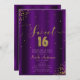 SWEET 16 Convites aos cantos de Confetti Roxo e Dourado.