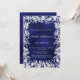 For an elegant Sweet 16, 16th birthday. A navy blue, uneven colored background. Decorated with a white snowflake frame. Personalize and add a name, age and party details. The name is written with a hand lettered style script