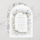Esta elegante suíte de casamento apresenta delicadas designs florais e folhagem num esquema de cor azul e dourado para um tema de casamento coeso e atordoante. O chá de panela impressionante em forma de arco mostrado aqui mostra uma doce borda floral e forma arquivada de tendência, adicionando um toque de romance e sofisticação ao visual geral. Adicione os detalhes de eventos necessários usando o modelo fornecido. Procure ID1045 para ver outros produtos neste design de casamento.
