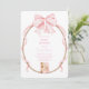 Announce your little darling's arrival with our irresistibly sweet Teddy Bear & Pink Bow Baby Girl Shower Invitation! This charming design features a delightful watercolor illustration of a cuddly teddy bear wrapped in a pink blanket, nestled at the bottom of a rustic yet elegant circular wreath. Adorning the top is a beautiful, soft pink watercolor bow, with delicate ribbons gracefully woven around the wreath, creating a truly enchanting and feminine touch.