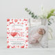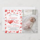 A sweetheart-themed first birthday photo invitation featuring red watercolor hearts, bows, and elegant modern typography alongside a customizable baby photo. Perfect for celebrating a little one turning one and ideal for heart-themed, girly, or sweet first birthday parties. Coordinates with matching party décor and stationery.