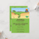 Um convite de aniversário divertido com um tema de dinossauro. A design apresenta um T-Rex feroz em uma paisagem árida com um vulcão em erupção distante. O Tiranossauro é verde com marcas roxas. Todos os textos podem ser totalmente personalizados com os detalhes da quarta festa de aniversário do seu filho. O tema está associado a um padrão de pegada de dinossauro no reverso do convite.