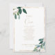 Esta tabela de folhagem chic número 1 é perfeita para um casamento rústico. A design apresenta uma folhagem verde de eucalipto que enrola uma estrutura geométrica dourada. A placa impressão verso (frente e verso)