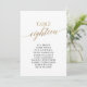 Estes elegantes cartões de 18 lugares na mesa dourada são perfeitos para um casamento simples. A design neutra apresenta uma carta minimalista decorada com a tipografia falsa de ouro romântica e caprichosa. A placa impressão na frente e atrás (lado duplo).