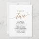 Estes cartões de lugar elegantes da mesa dourada número 2 são perfeitos para um casamento simples. A design neutra apresenta uma carta minimalista decorada com a tipografia falsa de ouro romântica e caprichosa. A placa impressão na frente e atrás (lado duplo).