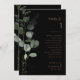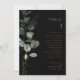 Esta mesa especial e formal número 1 é perfeita para elogiar um casamento rústico. O design apresenta uma folhagem verde de eucalipto com aquarela em um plano de fundo preto. A placa impressão verso (frente e verso)