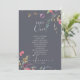 Este clássico assento de mesa azul selvagem número 1 é perfeito para um casamento rústico. A design apresenta flores silvestres brancas, amarelas, roxas e brancas com folhagem em fundo de rosa e aquarela verde. A placa impressão verso (frente e verso)