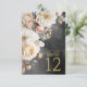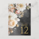 Esta suíte de casamento com seus florais exuberantes e dramáticos de branco cremoso a rosa pincelado, sotaques de ouro e belos fundos de cor d'água de cinzas de carvão, cria uma vibração elegante e romântica, dando apenas uma dica do que os hóspedes podem esperar no seu grande dia. Esta placa de número de tabela floral de coordenação, em um fundo de aquarela opcional, fornece uma modelo para adicionar facilmente o número da sua tabela. Procure ID1022 para ver todos os produtos nesta suíte de casamento.