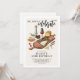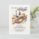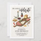 Convites femininos de festa de aniversário adulto com ilustração de um tablado de charcutaria com queijos, carnes e vinho. Além do título fofo 'beba, corte e celebre', e um modelo de texto fácil de personalizar.