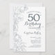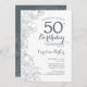 Slate Blue White Floral 50º Convite de aniversário. Design minimalista moderno com desenhos botânicos em destaque e letra de script de tipografia. Simples trendy convida cartão perfeito para uma festa de na moda. Pode ser personalizado para qualquer idade. Impressos convites Zazzle ou modelo de impressão digital instantânea para download.
