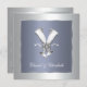 Elegante convite de festa de bodas de prata com taças de champanhe azul ardósia e prata.