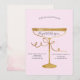 Elegante taça de champanhe em fundo rosa. Belo convite que pode ser personalizado com o seu nome. Selecione o botão "personalizar" para alterar o estilo, cor e tamanho da fonte.