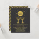 Ela está prestes a dar à luz! Então, vamos brindar à ocasião com um pouco de champanhe antes do grande dia! Este convite de chá de bebê elegante, moderno e na moda, prestes a dar à luz, tem as taças de champanhe brindando com bolhas e corações flutuando para o topo! O design é tratado com uma textura de foil dourada elegante e textura de aniagem preta. Na página reversa há um padrão ziguezague de chevron dourado e preto. Personalize com os detalhes da sua festa de chá de bebê.