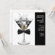 Modelo de convite de festa de aniversário masculino com martini. Este convite de festa de aniversário com gravata borboleta preta e martini é ótimo para a festa de aniversário de qualquer homem, aposentadoria, evento corporativo de gravata preta, festa de martini ou despedida de solteiro. Adicione seus detalhes na frente e/ou no verso deste convite de aniversário com gravata borboleta preta e martini, simplesmente escolhendo o botão "Personalize!" para começar a adicionar os detalhes do seu evento, estilo de fonte, tamanho e cor da fonte e texto. Por favor, note que todos os cartões e convites que você encontrará no Zazzle são gráficos impressos sem joias, laços, relevos, rebaixados ou peças adicionais.