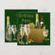 Convite de festa de aniversário de qualquer número de taças de vinho de champanhe verde dourado.