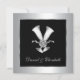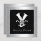 Elegantes convites de taças de champanhe prateadas e pretas para festa de aniversário de 25 anos de casamento.