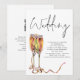 Convite de casamento em taças de champanhe minimalistas. Elegância simples com copos de champanhe na parte inferior esquerda e o cabeçalho principal em um estilo de letra manuscrita. Personalize facilmente o restante do texto com seus próprios detalhes. Com um código QR opcional (exclua se não necessário) no verso para a conveniência de seus convidados responderem e verem mais detalhes. Seu código QR será gerado automaticamente para atualizar o código de amostra no design, quando você simplesmente alterar a URL de amostra no modelo com a URL do seu site de casamento.