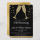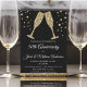 Convite de festa de taças de champanhe com diamantes dourados para festa de aniversário de 50 anos de casamento. O convite de festa de aniversário de 50 anos de casamento dourado e preto é perfeito para uma festa de aniversário de cinquenta anos moderna.