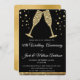 Convite de Festa de Taças de Champanhe Diamantadas Douradas para Festa de Aniversário de Casamento de 10 Anos. O convite de aniversário de casamento de 10 anos dourado e preto é perfeito para uma festa de Décimo Aniversário moderna.