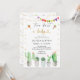 Este convite divertido apresenta suculentos de aquarela com sotaque dourado e sinalizadores de fiesta colorida.
